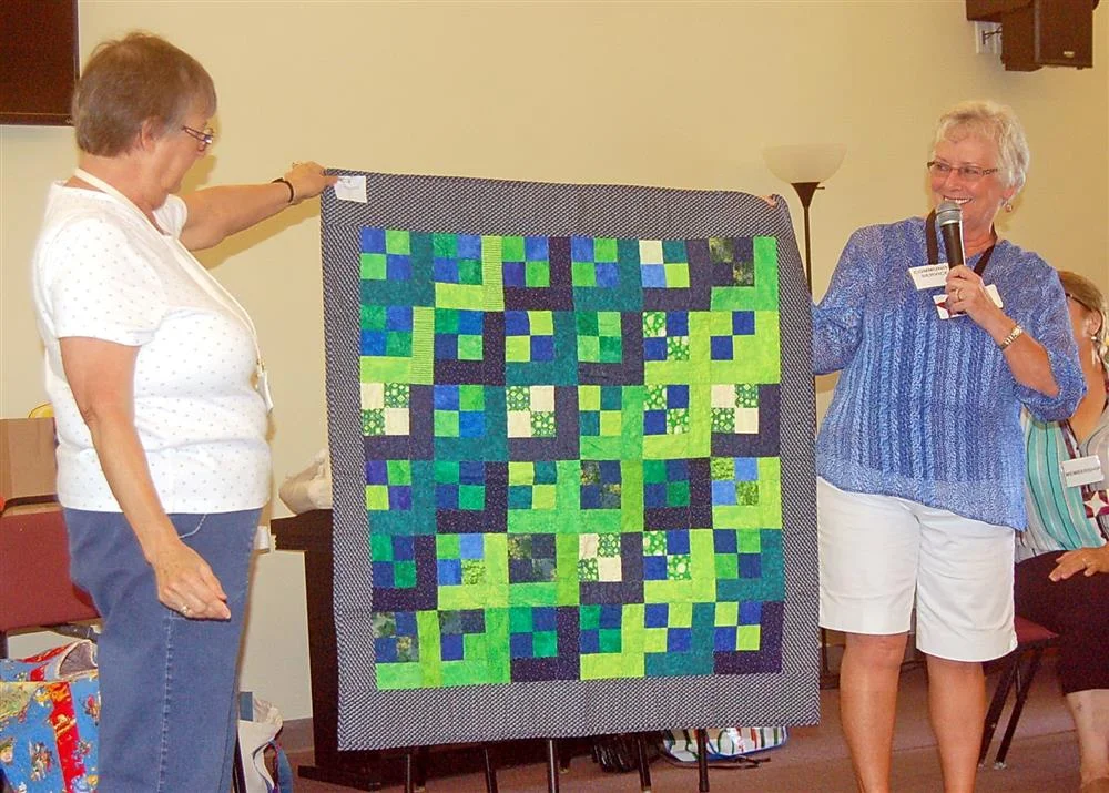 Jane stands ready to hand out our 10th Anniversary shirts and totes! What fun stuff. Great show and tell and lots of FIT quilts that are done and ready for the children who need them. Thank you to all who donated time, talent, fabric, machine quilting, bindings, etc.